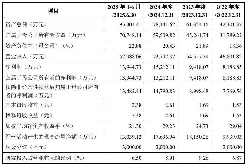 财务方面赢金配资,于2022年度、2023年度、2024年度及2025年1-6月,好盈科技实现营业收入约为4.68亿元、5.46亿元、7.38亿元、5.8亿元人民币;同期,净利润分别为8188.85万元、9418.07万元、1.52亿元、1.39亿元人民币。